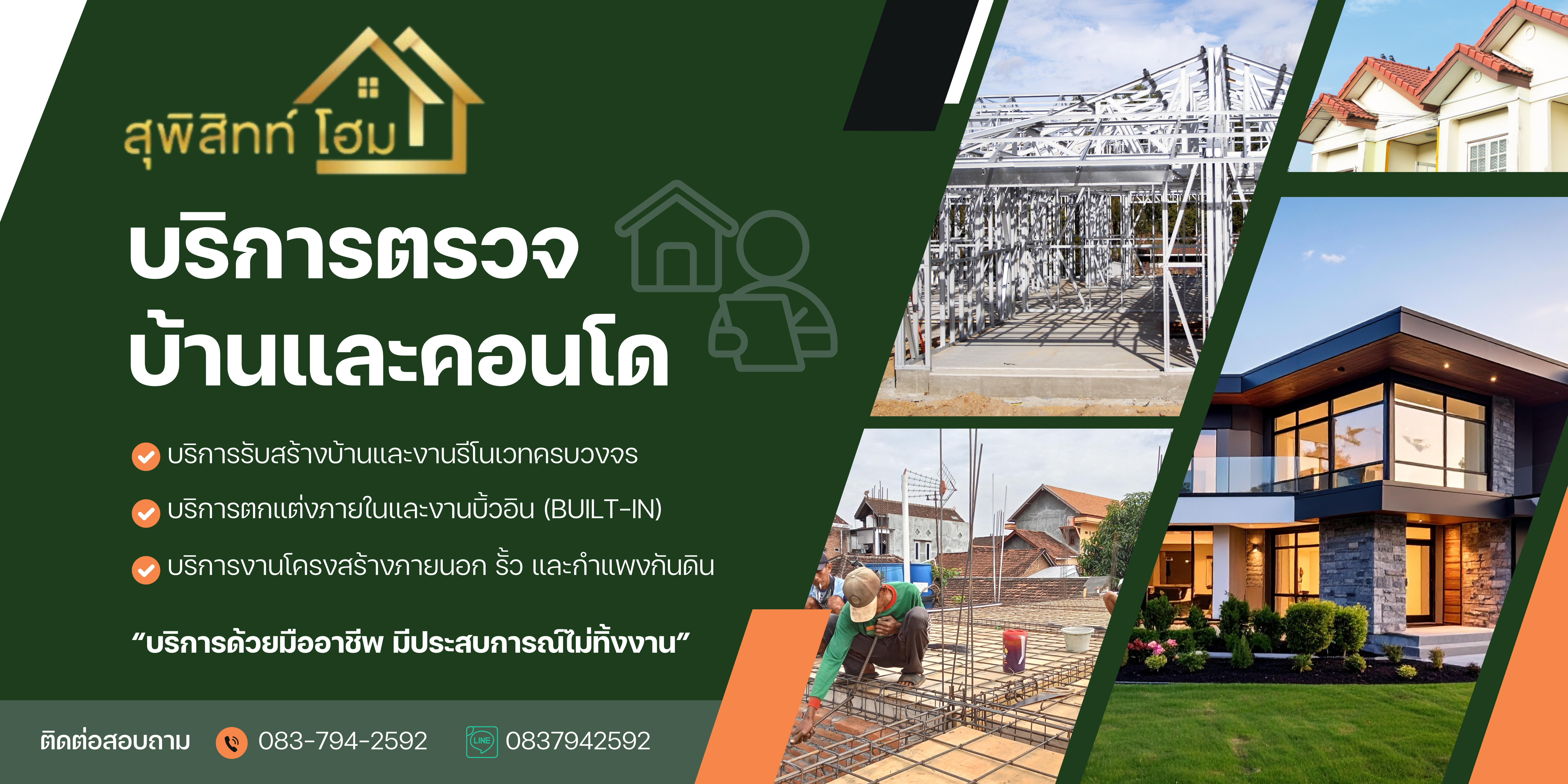 สุพิสิทท์ โฮมให้บริการครบวงจร รับสร้างบ้านใหม่ตั้งแต่ต้นจนจบ รีโนเวทบ้านเก่าให้สวยเหมือนใหม่ ต่อเติมและรั้วสำเร็จรูป กำแพงกันดินโครงสร้างมั่นคง และบิ้วอินเฟอร์นิเจอร์ตามพื้นที่ ใช้ทีมงานมืออาชีพ วัสดุคุณภาพ งานประณีต ตรงเวลา ส่งมอบงานตามที่ลูกค้าพอใจ ปรึกษาฟรี โทร 083-794-2592 หรือ LINE ID: 083-794-2592